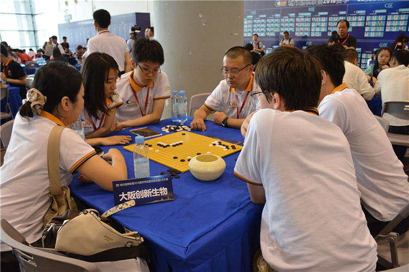 人民网南宁8月10日电(管若寒)2018中国围棋大会在南宁举行期间,东道主南宁原创主打的品牌赛事城市围棋联赛将部分重点赛事置于会展中心,作为大会的观摩赛事展开。图为城围联2018赛季常规赛第9轮精彩瞬间,古力、唐韦星等众多大咖亮相。摄影:顾灿希