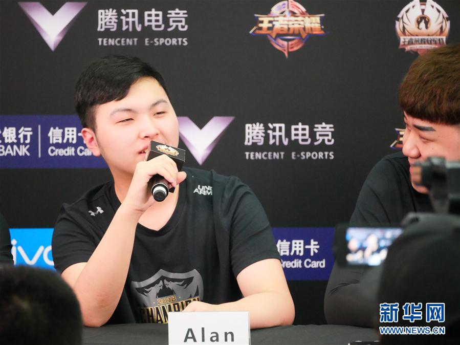 ↑ 8月11日,中国代表队队员王添龙(左)在发布会上接受采访。 新华社记者孟鼎博摄