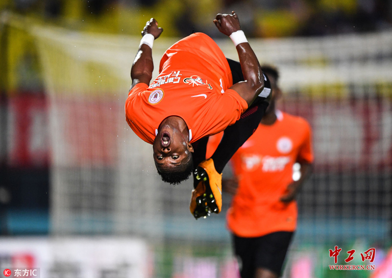 2018年8月12日,北京,2018中超联赛第17轮,北京人和VS天津权健。马西卡空翻庆祝进球。东方IC 李山泽 摄 东方IC片权图片 请勿转载
