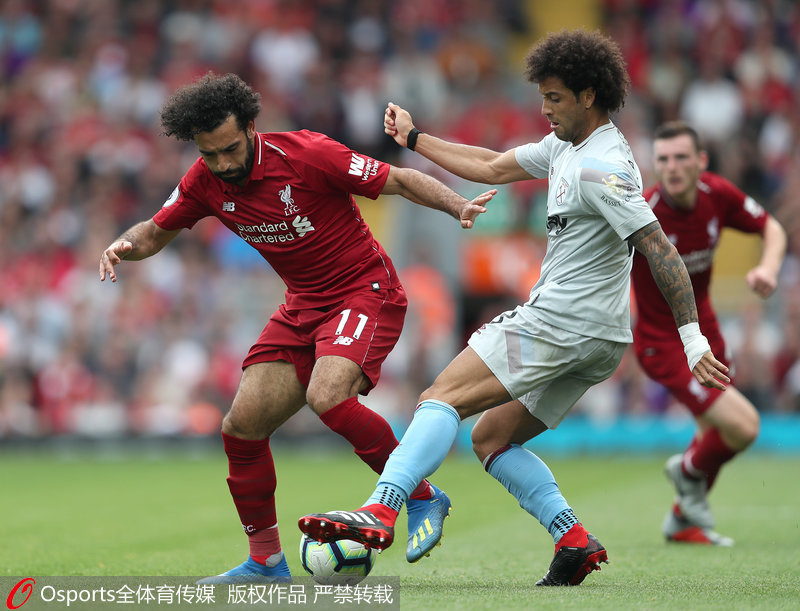 人民网北京8月13日电 北京时间昨晚,2018/19赛季英超首轮一场焦点战在安菲尔德球场展开争夺,利物浦主场4比0大胜西汉姆,萨拉赫先拔头筹,马内梅开二度,替补出场的斯图里奇锦上添花。