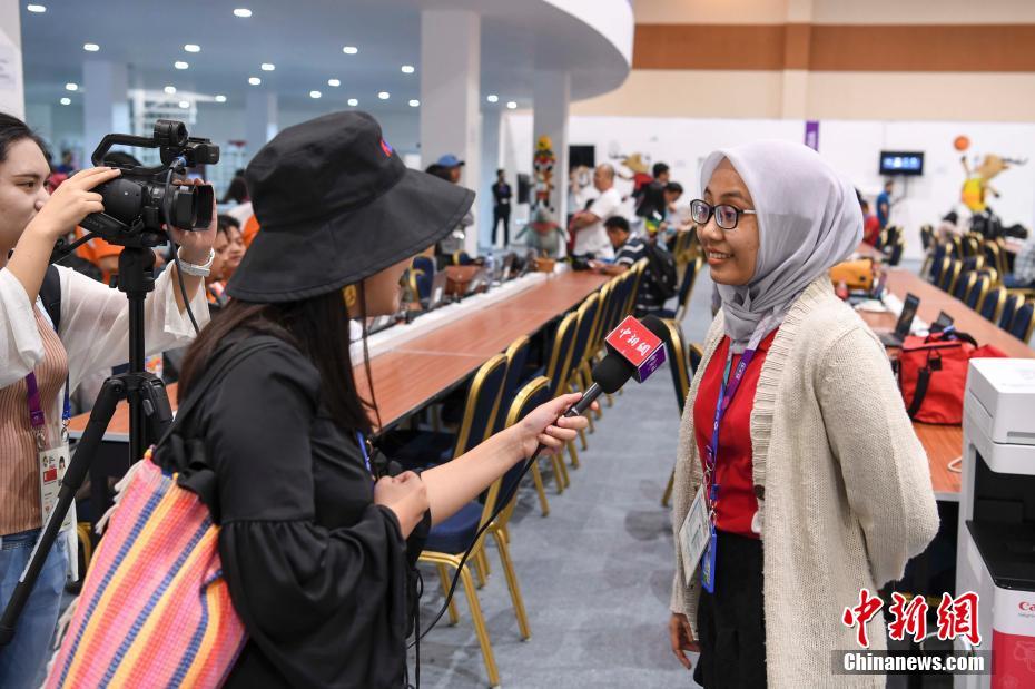记者在新闻中心采访。中新社记者 杨华峰 摄