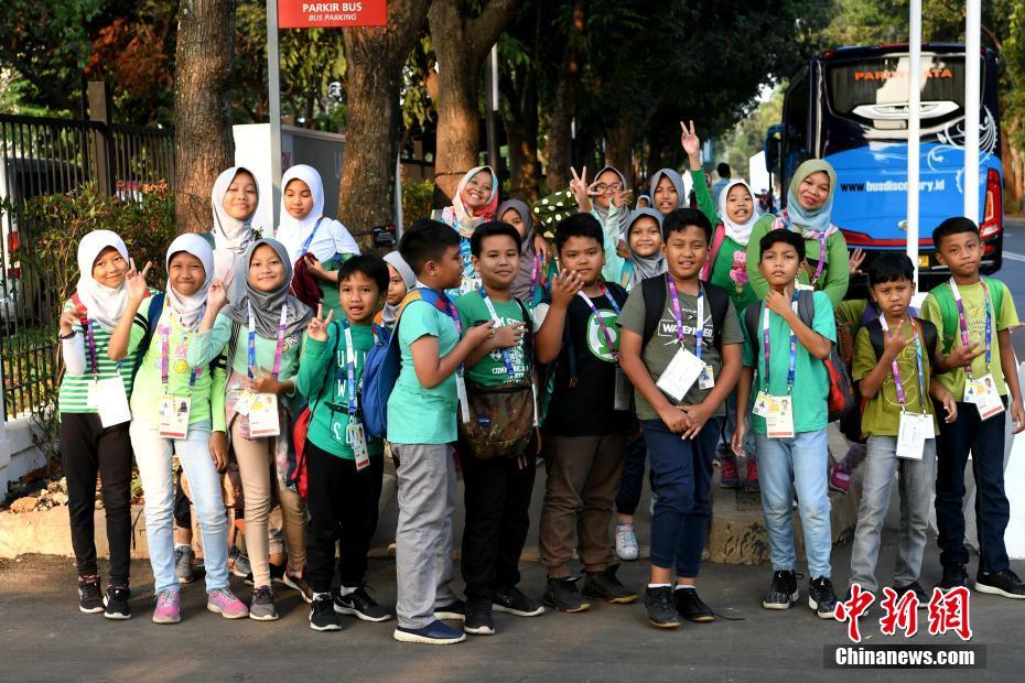 2018雅加达亚运会即将开幕,当地民众笑迎前来参加亚运会的八方来宾。 中新社记者 王东明 摄