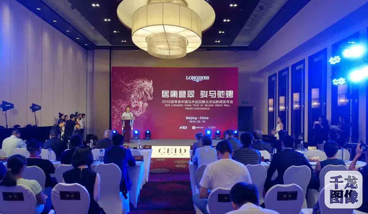 8月16日,2018浪琴表中国马术障碍巡回赛主办方在京宣布,北京站比赛将于9月14日至16日在居庸关长城脚下举行,为期三天。图为发布会现场。千龙网发 主办方供图