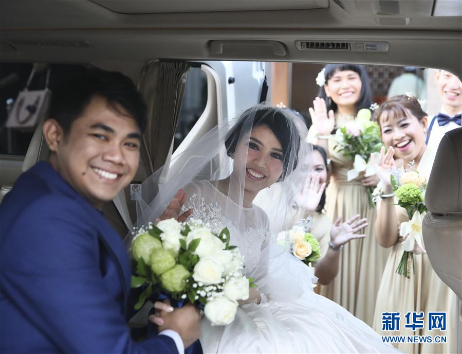 8月17日,一对印尼新人在雅加达千禧酒店举行婚礼。 当日是印尼独立日,也是第18届亚运会开幕前一天。 新华社记者兰红光摄