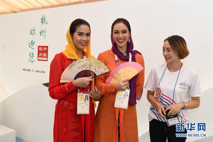 ↑8月18日,参观者在亚运杭州主题展体验中国传统的折扇。 8月18日,由杭州亚组委牵头、西泠印社承办的“独特韵味,别样精彩——2022杭州欢迎你”亚运主题展览亮相雅加达朋加诺体育中心。据了解,这也是2022年第19届亚运会组委会、杭州市政府首次举办海外亚运文化展览。展览将重点推介杭州作为“历史文化名城、创新活力之城、生态文明之都、东方品质之城”的特色,并进行体育人文方面的介绍。 新华社记者黄宗治摄