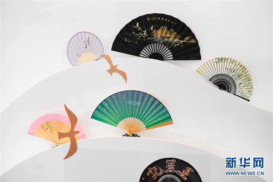 ↑这是8月18日拍摄的在亚运杭州主题展上展出的中国折扇。新华社记者黄宗治摄