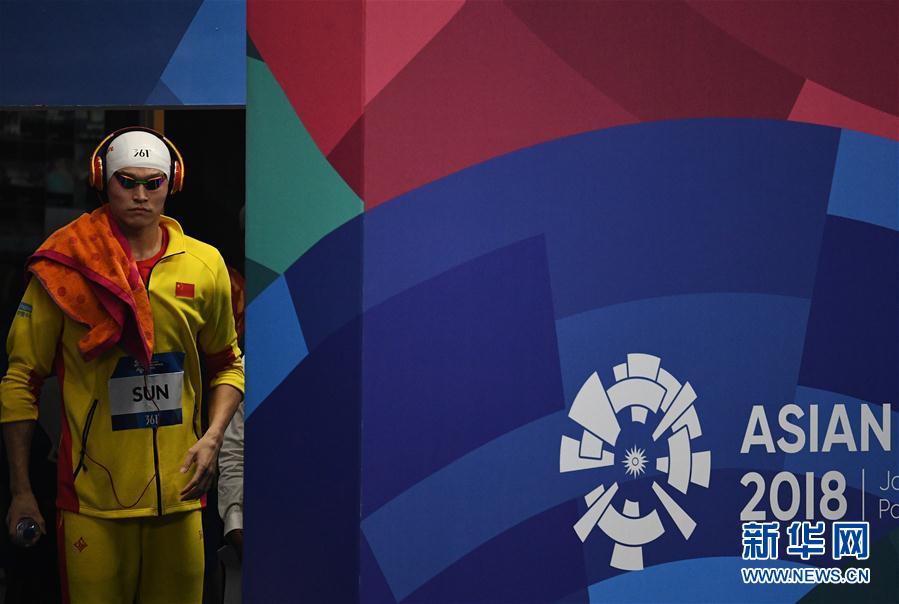 8月19日,中国选手孙杨在赛前入场。当日,在第18届亚运会男子200米自由泳决赛中,中国选手孙杨以1分45秒43的成绩夺冠。新华社记者李响摄