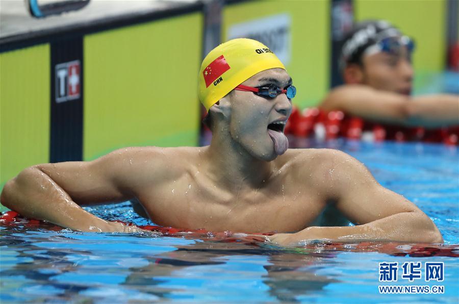 8月19日,中国选手徐嘉余在比赛后。 当日,在第18届亚运会男子100米仰泳决赛中,中国选手徐嘉余以52秒34的成绩夺冠。新华社记者费茂华摄