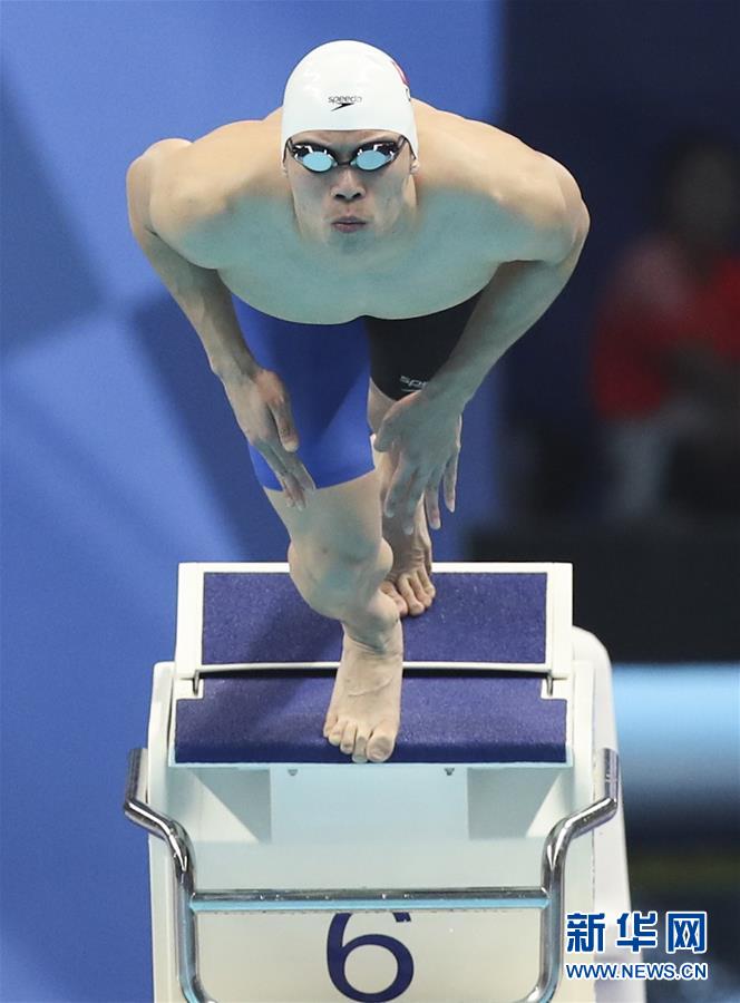 8月19日,中国选手李朱濠在比赛中。 当日,在第18届亚运会男子200米蝶泳决赛中,中国选手李朱濠以1分55秒76的成绩获得铜牌。 新华社记者丁汀摄