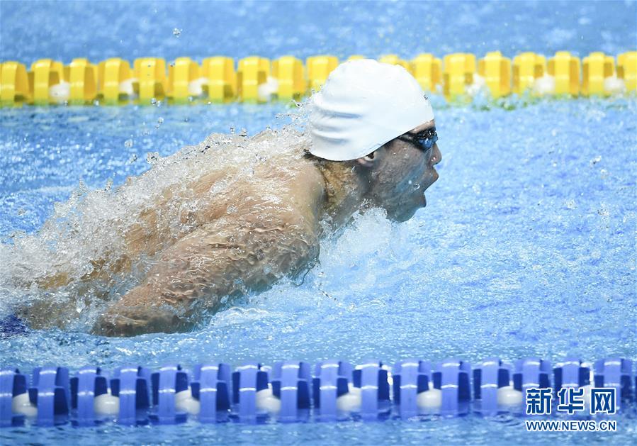 8月19日,中国选手李朱濠在比赛中。 当日,在第18届亚运会男子200米蝶泳决赛中,中国选手李朱濠以1分55秒76的成绩获得铜牌。 新华社记者李响摄