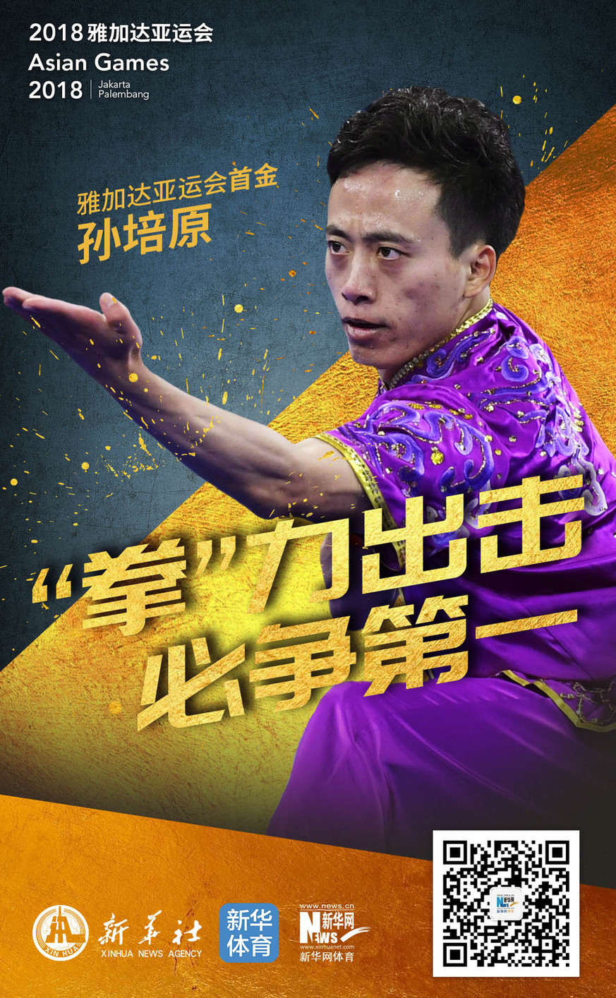 在第18届亚运会武术男子长拳决赛中,中国选手孙培原以9.75分的成绩获得冠军,本届亚运会首枚金牌产生。