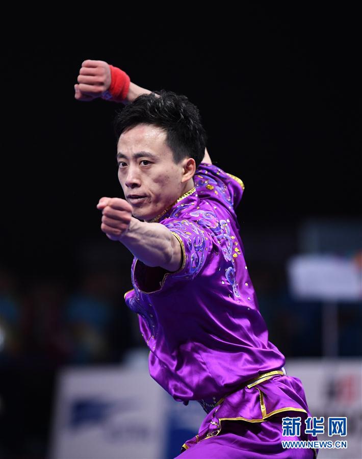 8月19日,中国选手孙培原在比赛中。当日,在第18届亚运会武术男子长拳决赛中,中国选手孙培原以9.75分的成绩获得冠军,本届亚运会首枚金牌产生。新华社记者潘昱龙摄
