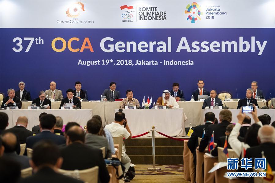 ↑8月19日拍摄的第37届亚奥理事会代表大会现场。 新华社记者张金加摄