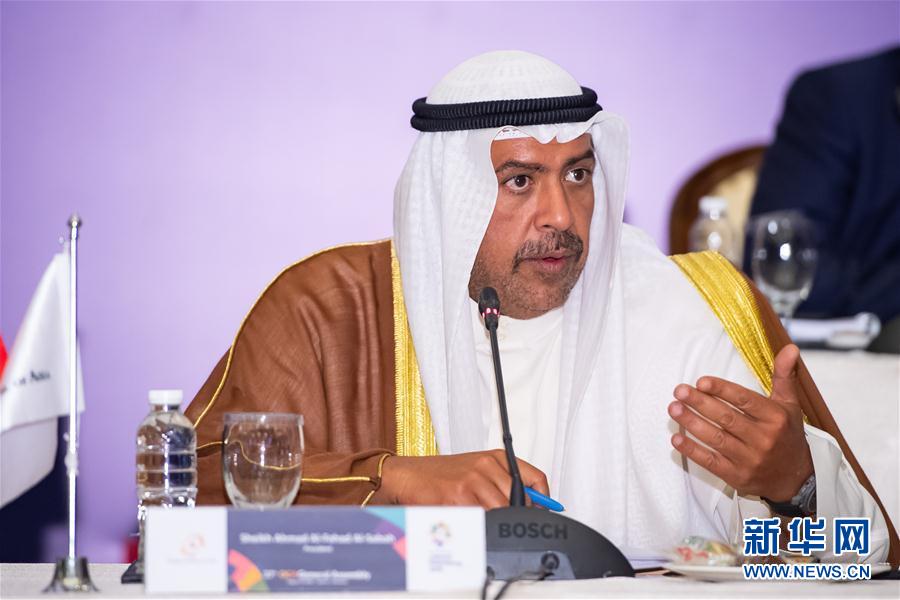 ↑8月19日,亚奥理事会主席艾哈迈德亲王在会议上致辞。 新华社记者张金加摄