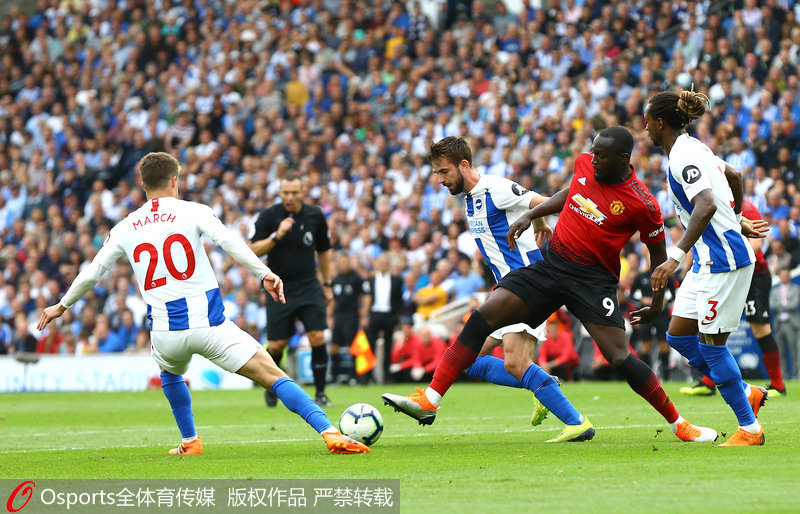 第10分钟,博格巴外脚背传球,卢卡库禁区右肋12码处低射,皮球擦着立柱偏出。第25分钟,布莱顿率先取得进球。马奇左路传中,穆雷抢在林德洛夫之前近距离外脚背弹射入网,1-0。