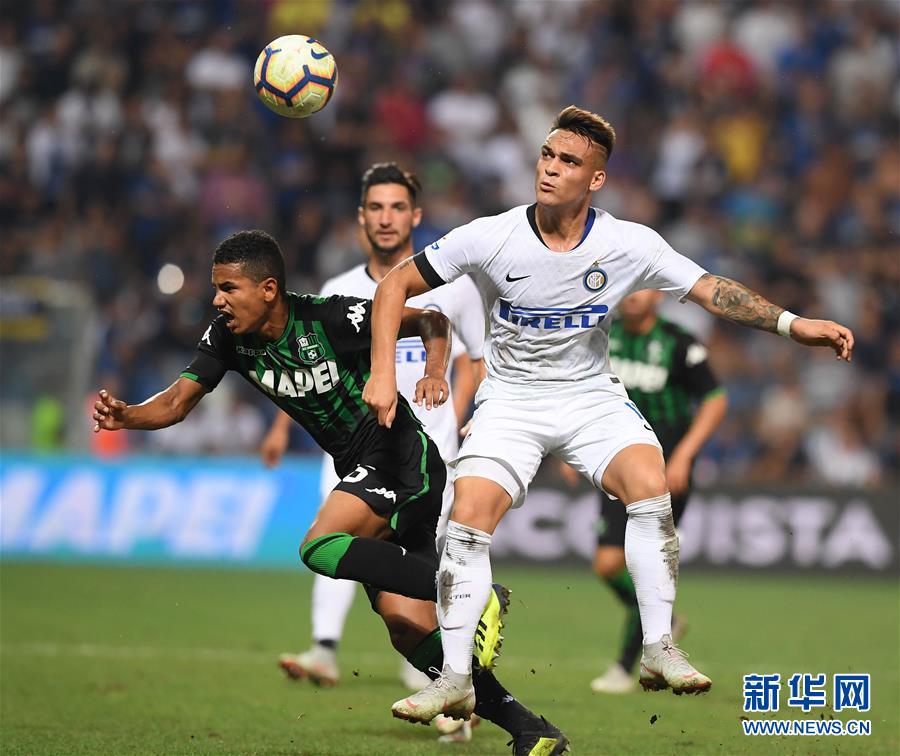 ↑8月19日,国际米兰队球员劳塔罗(右)与萨索洛队球员罗热里奥在比赛中拼抢。 当日,在雷焦艾米利亚进行的2018-2019意甲联赛首轮比赛中,国际米兰队客场以0比1不敌萨索洛队。 新华社发(阿尔贝托·林格里亚摄)