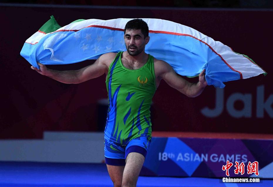 乌兹别克斯坦选手获亚运会男子摔跤74公斤级冠军