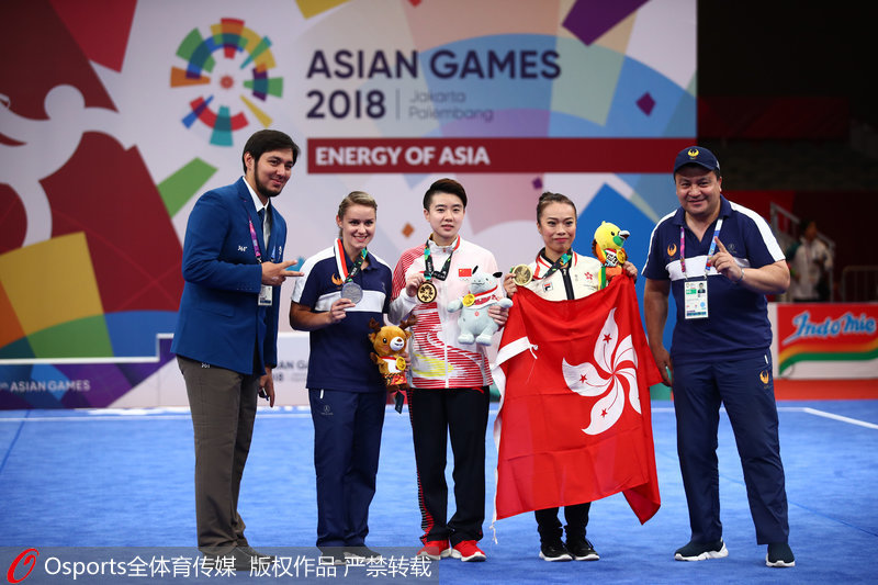 人民网北京8月20日电(李乃妍 实习生武帅男)北京时间8月20日,雅加达亚运会女子南拳南刀全能决赛颁奖仪式, 中国选手汤露为中国代表团再添一金。(Osports全体育传媒专供人民体育 版权作品 严禁转载)