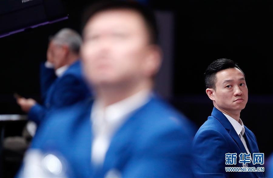 ↑8月20日,奥运冠军杨威(右)在印度尼西亚雅加达举行的第18届亚运会体操男子资格赛暨个人全能决赛中担任吊环项目裁判。 新华社记者王丽莉摄