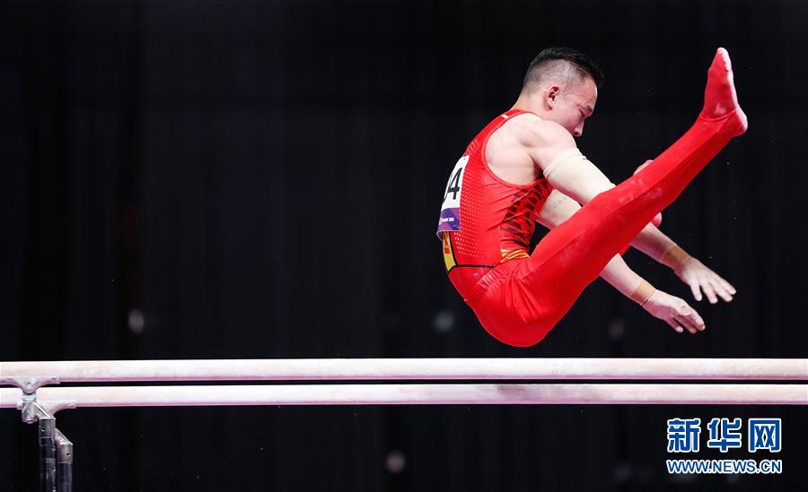 ↑8月20日,中国选手肖若腾在双杠比赛中。新华社记者王丽莉摄