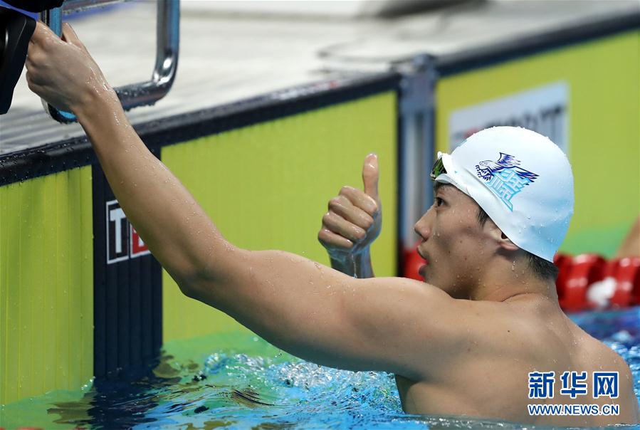 ↑8月20日,中国选手汪顺在比赛后。 新华社记者费茂华摄