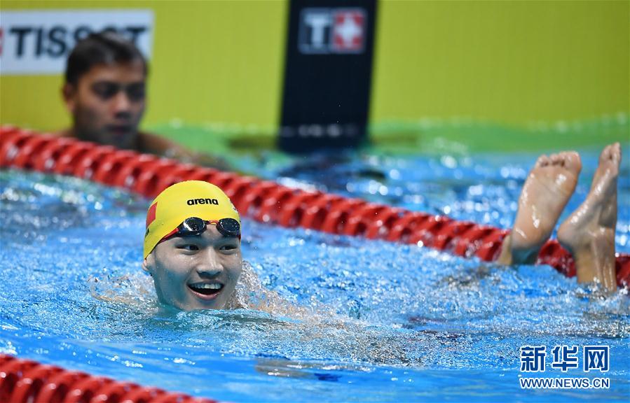 8月20日,中国选手徐嘉余在比赛后。 当日,在第18届亚运会男子50米仰泳决赛中,中国选手徐嘉余以24秒75的成绩夺冠。 新华社记者李响摄