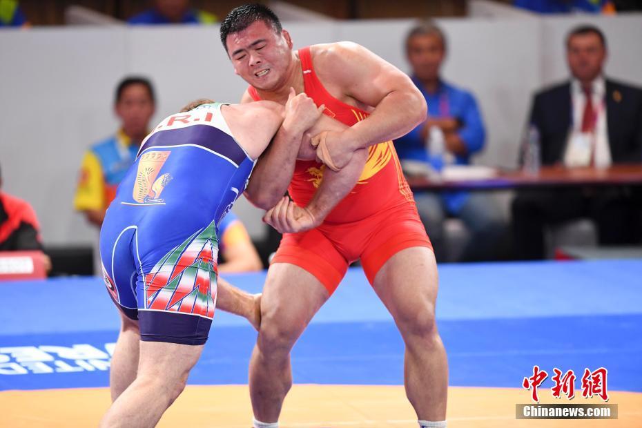 亚运会男子摔跤125公斤级 中国选手邓志伟摘银