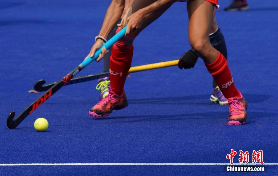 8月21日,印尼雅加达亚运会女子曲棍球进入第三个比赛日,中国香港迎战日本,最终以0:6比分输掉比赛。图为中国香港球员在比赛中。中新社记者 李霈韵 摄