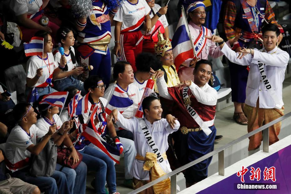 当地时间8月21日下午,雅加达亚运会羽毛球女子团体半决赛展开激战,中国队以3-0力克尤伯杯苦主泰国队,强势杀入决赛。图为泰国啦啦队队员为选手助威。中新社记者 刘关关 摄