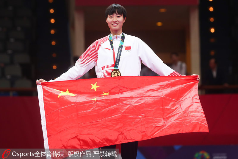 人民网北京8月21日电(杨磊 实习生邓方佳) 北京时间8月21日,2018雅加达亚运会跆拳道女子57公斤级决赛结束,中国选手骆宗诗夺得金牌。