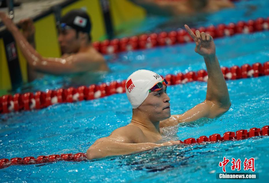 当地时间8月21日,雅加达亚运会男子400米自由泳决赛,孙杨在第四道出发,300米后以绝对优势领先所有参赛选手,最终以3分42秒92的成绩轻松夺冠。亚运会游泳比赛进入第三天,这也是孙杨收获的本届亚运会个人单项第三枚金牌。中新社记者 李霈韵 摄