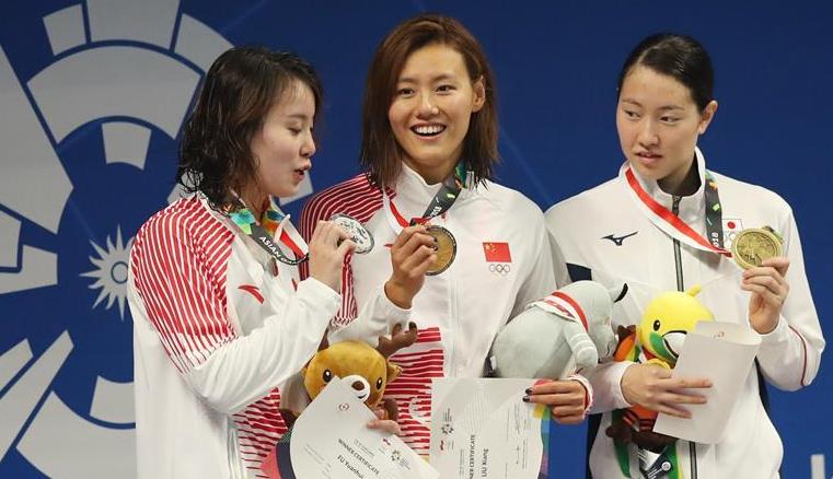 女子50米仰泳颁奖仪式