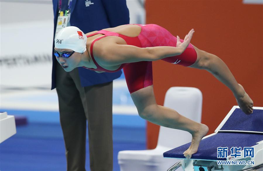 8月21日,中国选手张雨霏在比赛中入水。 当日,在第18届亚运会女子100米蝶泳决赛中,中国选手张雨霏以57秒40的成绩获得亚军。 新华社记者丁汀摄