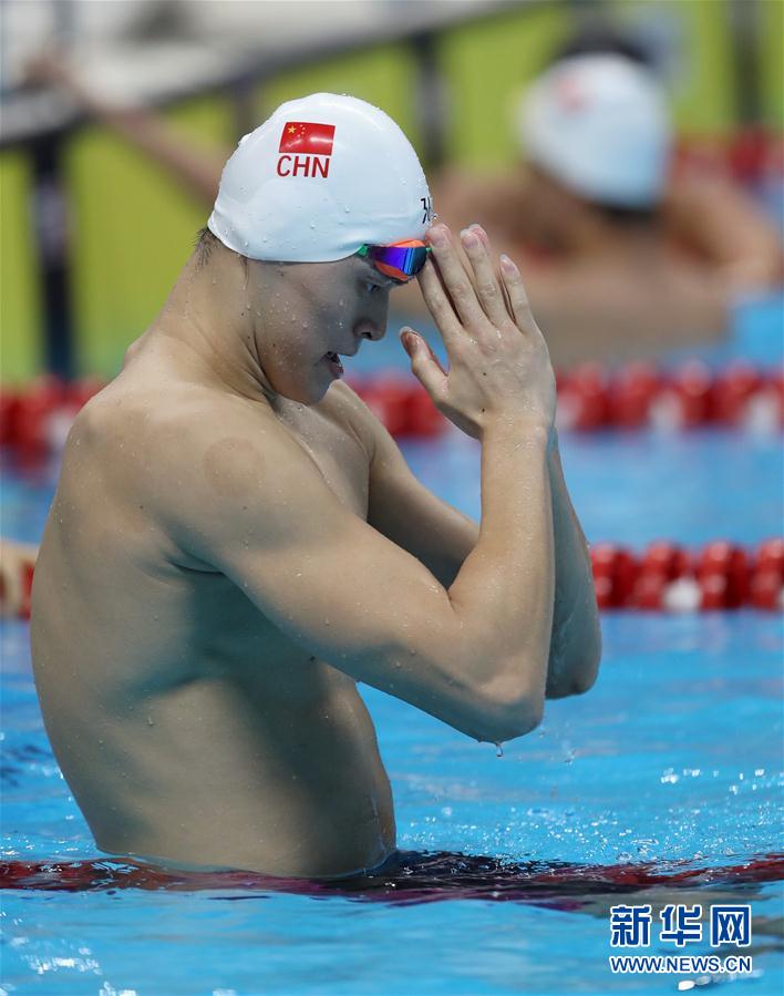 8月21日,中国选手孙杨在比赛后。 当日,在第18届亚运会男子400米自由泳决赛中,中国选手孙杨以3分42秒92的成绩夺冠。 新华社记者费茂华摄