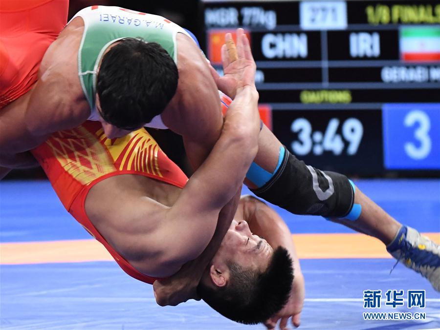 男子古典式77公斤级八分之一决赛:中国选手杨斌不敌伊朗选手