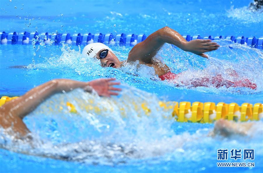 8月22日,中国选手李冰洁在比赛中。 当日,在第18届亚运会女子200米自由泳决赛中,中国选手李冰洁以1分56秒74的成绩夺冠。 新华社记者潘昱龙摄