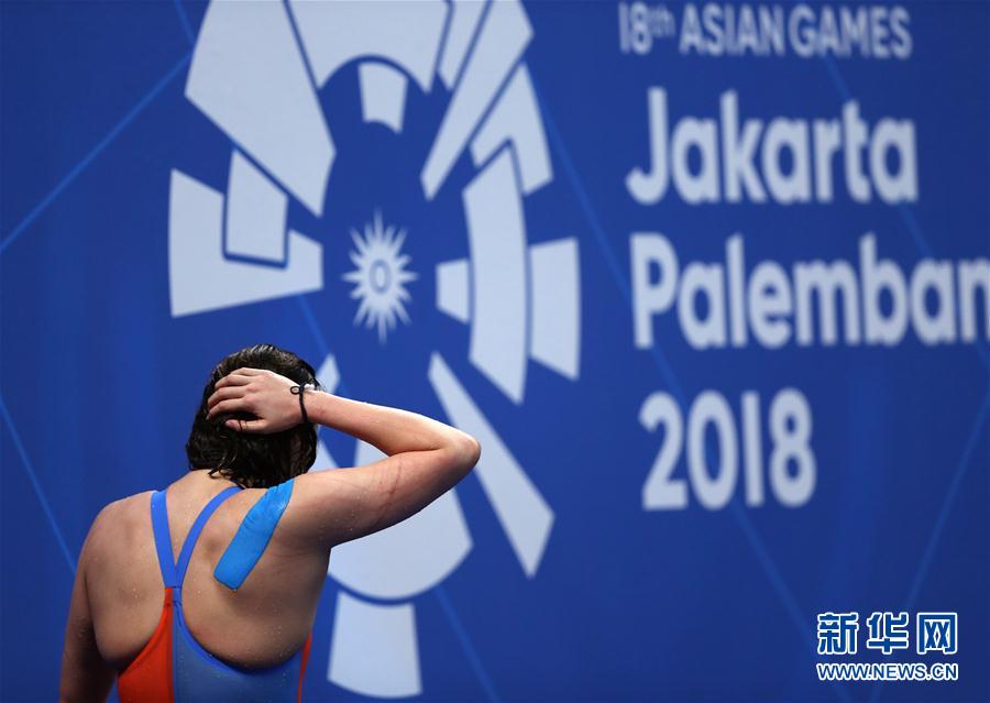 8月22日,中国选手傅园慧在比赛后。 当日,在第18届亚运会女子100米仰泳决赛中,中国选手傅园慧以1分00秒35的成绩获得第四名。 新华社记者费茂华摄
