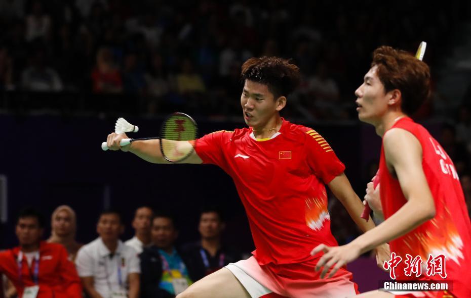 8月22日晚,雅加达亚运会羽毛球男团决赛中,中国羽毛球队经历将近五小时的鏖战,最终3:1力克东道主印尼夺冠。担任第一单打的石宇奇为国羽先拔头筹,印尼第一双打组合吉迪恩/苏卡穆约战胜李俊慧/刘雨辰扳平比分,但随后谌龙、刘成/张楠均战胜对手,为国羽锁定金牌,而担任第三单打的林丹并未出场。图为中国双打组合李俊慧/刘雨辰(左)。中新社记者 杜洋 摄