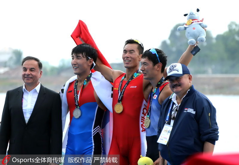 人民网北京8月23日电(李乃妍 实习生武帅男)北京时间今日,雅加达亚运会赛艇男子单人双桨决赛中,中国选手张亮夺冠。(Osports全体育传媒专供人民体育 版权作品 严禁转载)