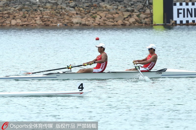 人民网北京8月23日电(李乃妍 实习生武帅男)北京时间今日,雅加达亚运会赛艇男子双人单桨无舵手决赛中,中国组合赵景滨、李小雄夺得冠军。(Osports全体育传媒专供人民体育 版权作品 严禁转载)