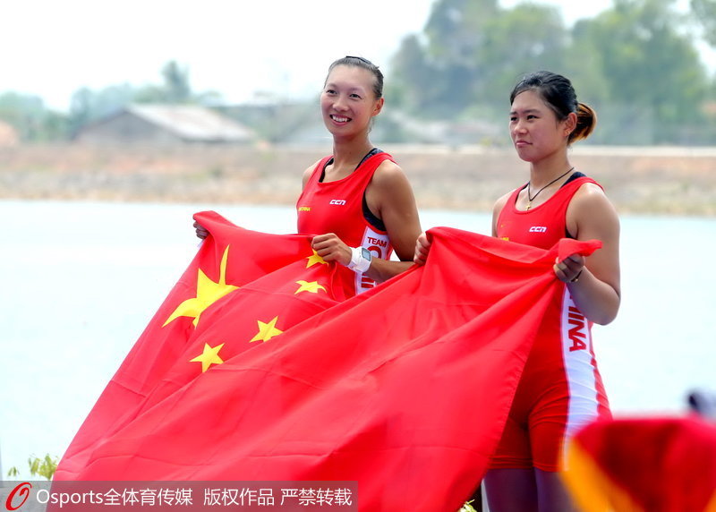人民网北京8月23日电(李乃妍 实习生武帅男)北京时间今日,雅加达亚运会赛艇女子双人单桨无舵手决赛中,中国组合巨蕊、林心玉摘得金牌。(Osports全体育传媒专供人民体育 版权作品 严禁转载)