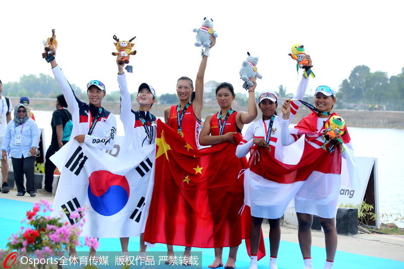 人民网北京8月23日电(李乃妍 实习生武帅男)北京时间今日,雅加达亚运会赛艇女子双人单桨无舵手决赛中,中国组合巨蕊、林心玉摘得金牌。(Osports全体育传媒专供人民体育 版权作品 严禁转载)
