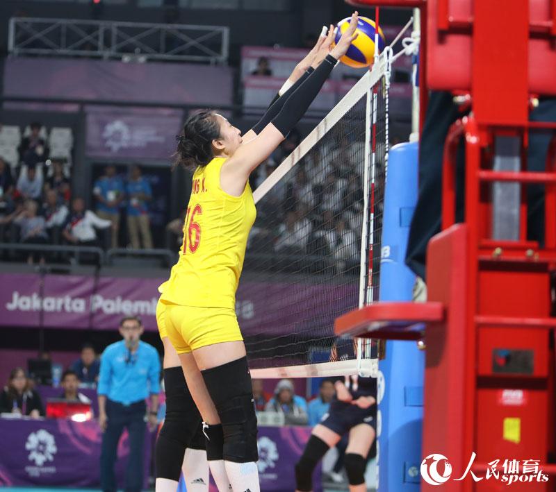 人民网雅加达8月23日电(记者 赵欣悦)当地时间8月23日下午16时30分,2018年雅加达亚运会进行了女排小组赛第3轮的比赛,由中国女排对阵韩国女排。本场比赛中国队派出了绝对主力,朱婷首发并打满全场,整场比赛她一共拿下18分帮助中国女排以3-0(25-21/25-16/25-16)完胜韩国,豪取小组三连胜,基本锁定B组头名。