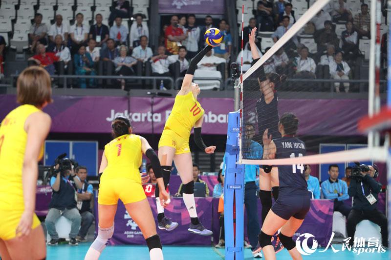 人民网雅加达8月23日电(记者 赵欣悦)当地时间8月23日下午16时30分,2018年雅加达亚运会进行了女排小组赛第3轮的比赛,由中国女排对阵韩国女排。本场比赛中国队派出了绝对主力,朱婷首发并打满全场,整场比赛她一共拿下18分帮助中国女排以3-0(25-21/25-16/25-16)完胜韩国,豪取小组三连胜,基本锁定B组头名。