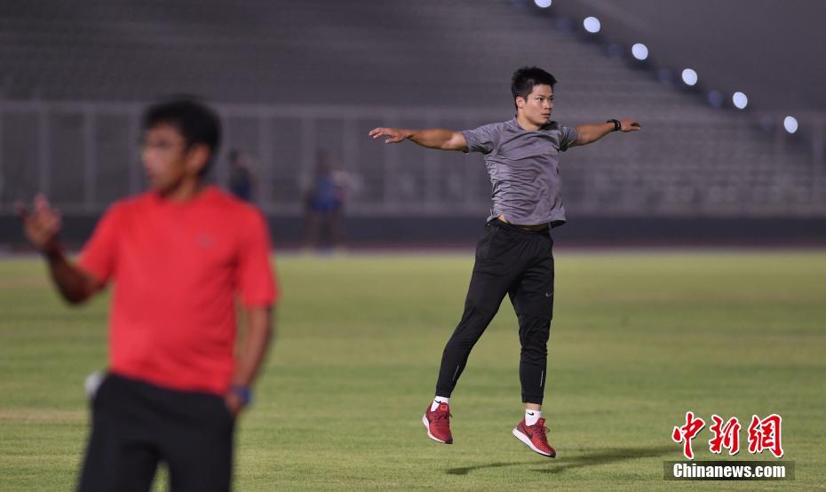 当地时间8月23日,苏炳添进行亚运会首训,为即将到来的比赛做准备,训练时常约为两小时。在接受记者采访时,苏炳添称自己状态已经调整好,本次亚运会目标就是为了摘金。中新社记者 李霈韵 摄