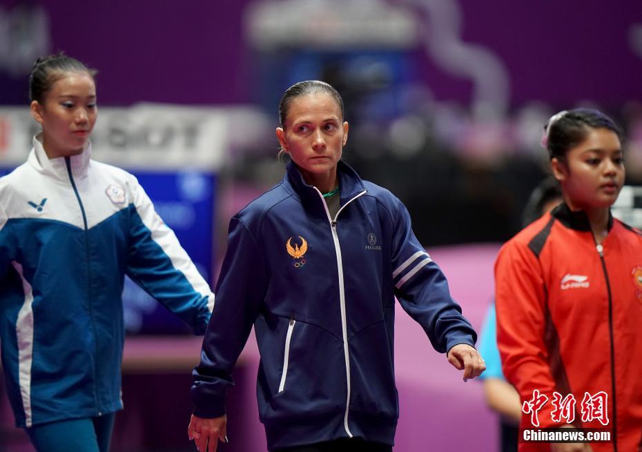 8月23日,雅加达亚运会体操女子跳马决赛,乌兹别克斯坦选手奥克萨娜·丘索维金娜以14.287分获得一枚银牌。现年43岁的丘索维金娜此前为了给患白血病的儿子筹款治病,曾代表不同国家多次参加体操世锦赛和奥运会,如今儿子已经康复,“体操妈妈”再次代表乌兹别克斯坦参加雅加达亚运会,继续其体操梦想。图为丘索维金娜(中)在女子跳马比赛中出场。中新社记者 侯宇 摄