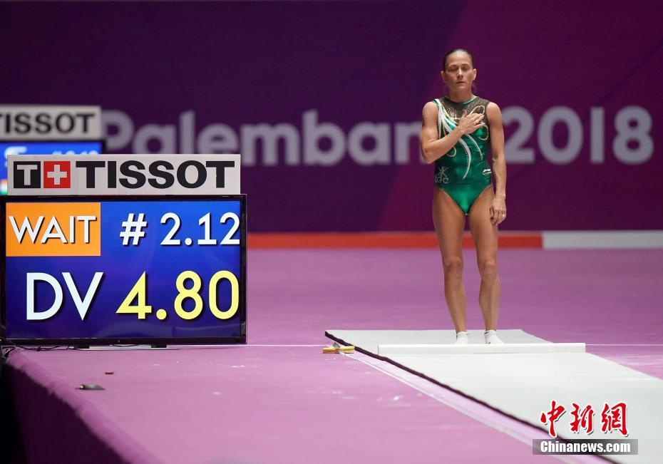 8月23日,雅加达亚运会体操女子跳马决赛,乌兹别克斯坦选手奥克萨娜·丘索维金娜以14.287分获得一枚银牌。现年43岁的丘索维金娜此前为了给患白血病的儿子筹款治病,曾代表不同国家多次参加体操世锦赛和奥运会,如今儿子已经康复,“体操妈妈”再次代表乌兹别克斯坦参加雅加达亚运会,继续其体操梦想。图为丘索维金娜在第一次试跳前祈祷。中新社记者 侯宇 摄