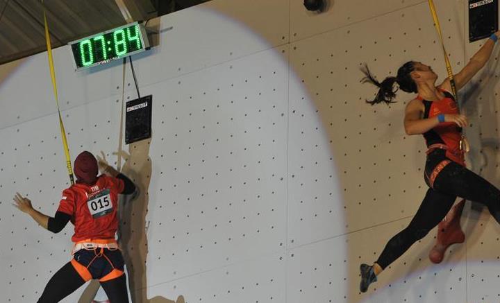 女子速度攀岩:何翠莲获得铜牌