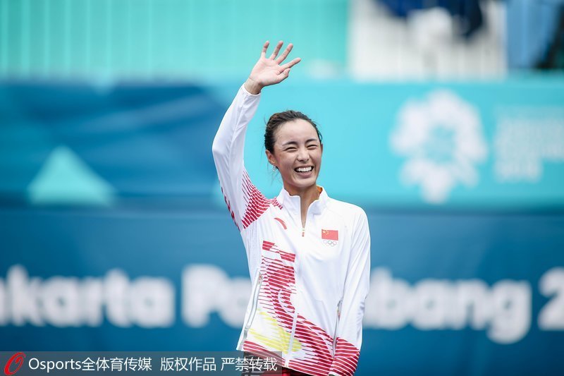 人民网北京8月24日电(李乃妍 实习生武帅男)北京时间今日,雅加达亚运会网球女子单打决赛中,中国金花内战。最终王蔷以大比分2-0战胜张帅,赢得金牌;而张帅获得银牌。(Osports全体育传媒专供人民体育 版权作品 严禁转载)