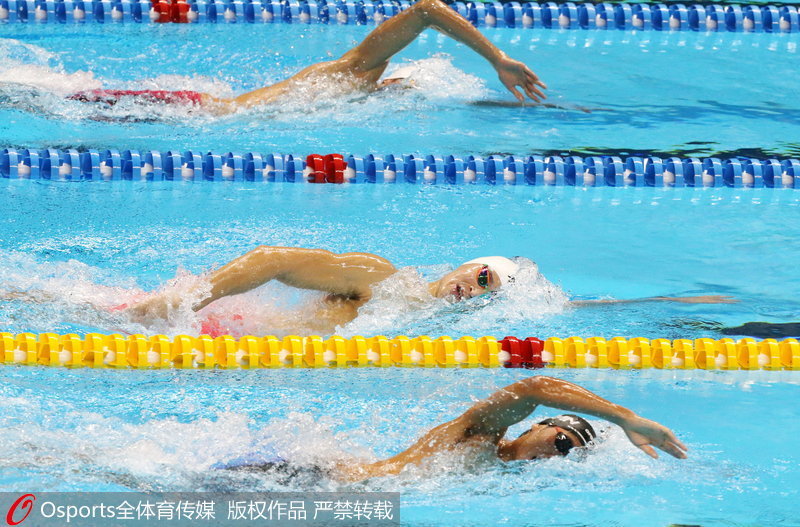 人民网北京8月24日电(管若寒 实习生邓方佳) 北京时间8月24日晚,2018雅加达亚运会男子1500米自由泳决赛结束,中国选手孙杨以14分58秒53夺得金牌,赢得亚运会男子1500米自由泳三连冠,这也是孙杨在本届亚运会上的第四冠。越南选手阮辉煌以15分01秒63获得亚军,中国另一选手季新杰以15分06秒18获得第三名。